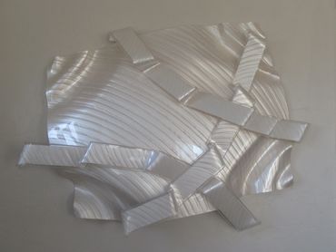 I avoid bringing in framed in glass or plexi works to galleries due to damage they may have. But, Ribbons are very sturdy-- even though they look fragile. For designers: just a bit of bubble wrap is needed for transport in a van loaded with other art. No worries.